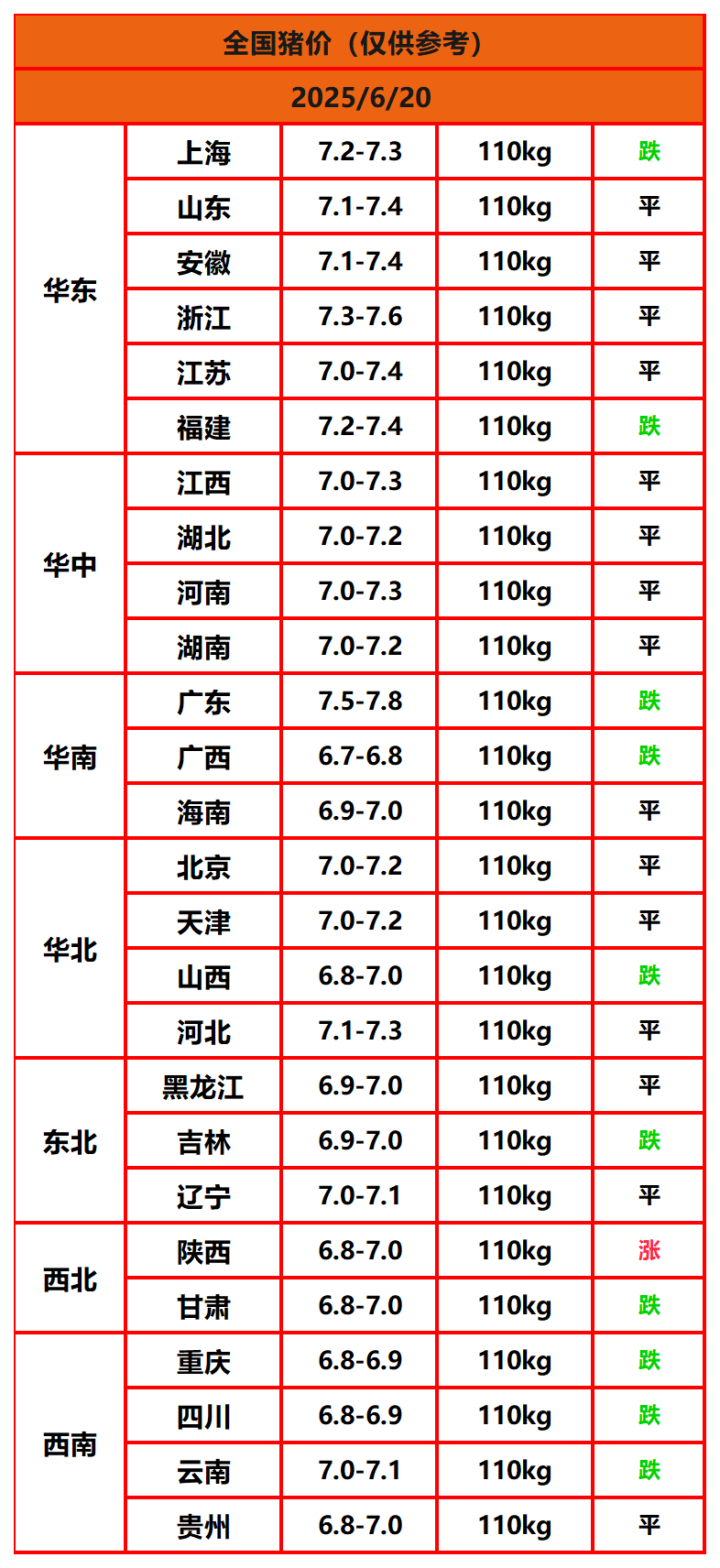 2025年6月20日猪价,今日全国猪价行情走势:1涨10平15跌。
